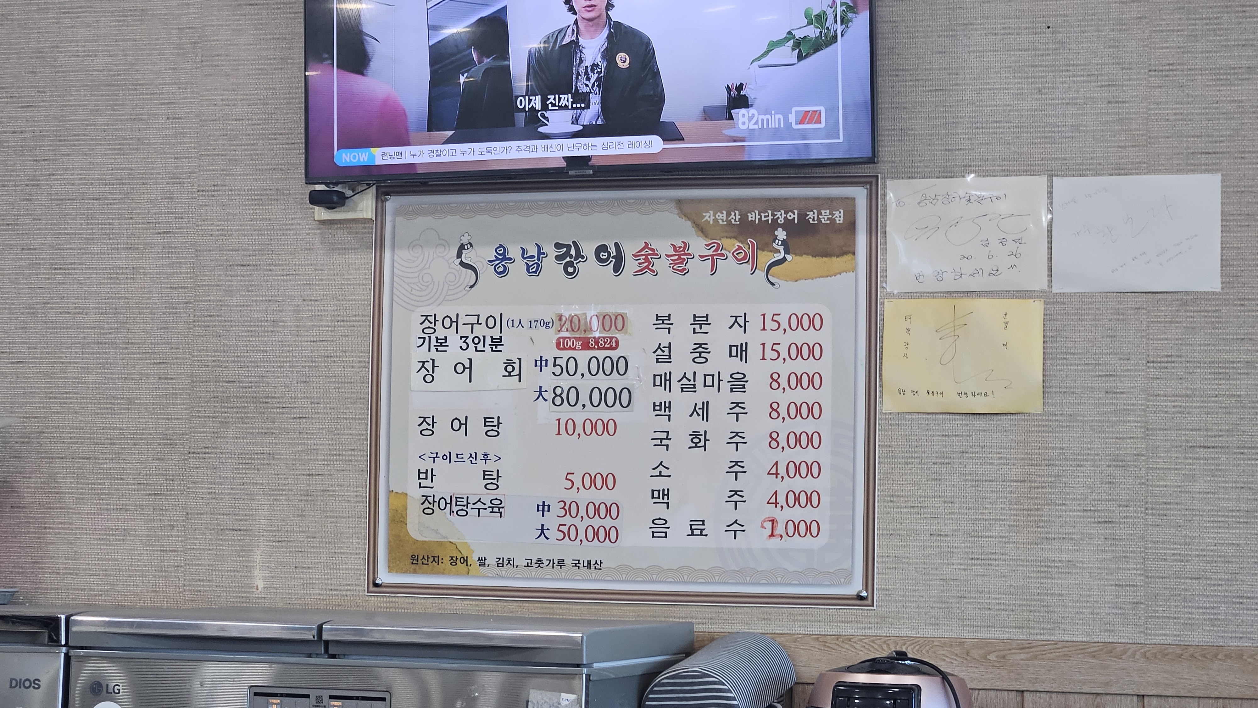 장어구이 1인분에 170g 이고 20,000원이구요.